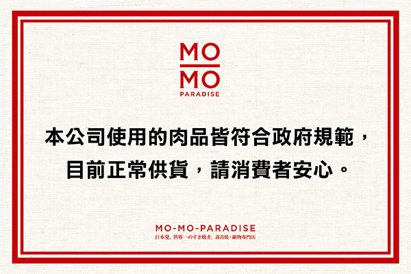 1993年在日本誕生首家Mo-Mo-Paradise壽喜燒・鍋物專賣店,2003年引進台灣,以『創造顧客最美好用餐體驗』為信念價値,採無限量供應方式,提供專業的日式服務與湯頭。在全球8個城市擁有超過40間分店。